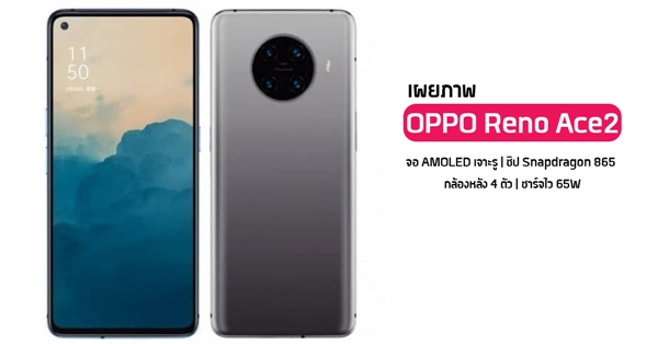 OPPO Reno Ace2 ว่าที่มือถือสเปกแรงเผยภาพใหม่ พบมาพร้อมจอไร้ขอบเจาะรู และกล้องหลัง 4 ตัว คาดเตรียมเปิดตัวเร็วๆ นี้