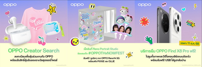 OPPO Reno14 Series 5G ชวนสายชิคมาสนุกสุดพลังในงาน NOW FEST 2025 พร้อมกิจกรรมสุดเอ็กซ์คลูซีฟ 11-12 ต.ค. นี้