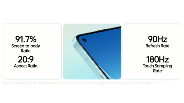สำหรับ OPPO Reno6 5G มาพร้อมกับจุดเด่นด้านหน้าจอแสดงผล AMOLED ขนาด 6.5 นิ้ว ความละเอียดระดับ Full HD+ ที่มีค่า Refresh Rate ระดับ 90Hz พร้อมค่า Touch Sampling Rate ระดับ 180Hz เพื่อช่วยให้ใช้งานได้อย่างลื่นไหล และตอบสนองต่อการสัมผัสได้อย่างฉับไว บนดีไซน์แบบ Ultra-slim Retro Design ที่กรอบตัวเครื่องมีความเหลี่ยม จับถือได้อย่างถนัดมือ พร้อมบอดี้แบบ Reno Glow ที่สามารถสะท้อนแสงได้ระยิบระยับ
