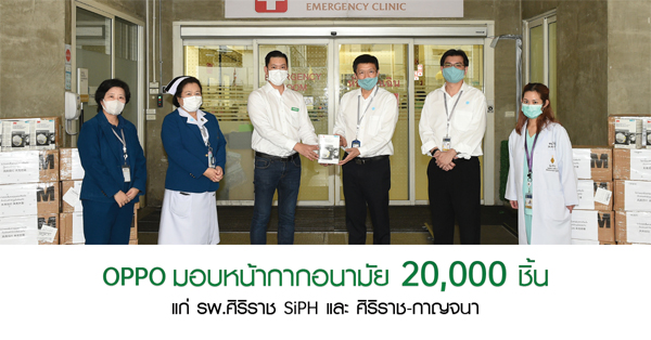 สำนักงานใหญ่ออปโป้ บริจาคหน้ากากอนามัย 20,000 ชิ้น แก่รพ.ศิริราช SiPH และ ศิริราช-กาญจนา พร้อมเป็นกำลังใจให้แก่แพทย์ พยาบาล และบุคลากรที่เกี่ยวข้อง