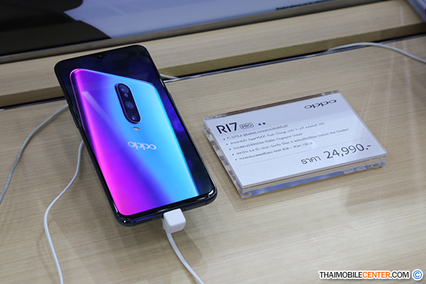 เริ่มต้นที่สมาร์ทโฟน R-Series รุ่นยอดนิยมอย่าง OPPO R17 Pro กันก่อน โดยสมาร์ทโฟนรุ่นดังกล่าวมีราคาวางจำหน่ายอยู่ที่ 24,990 บาท และพิเศษสำหรับผู้ที่ซื้อในงานจะได้รับของแถมสุดพิเศษเป็น Sharp AQUOS LED Digital TV ขนาด 32 นิ้ว พร้อมขาตั้งกล้อง OPPO Tripod (ของแถมมีจำนวนจำกัด) นอกจากนี้ ผู้ที่ซื้อ OPPO R17 Pro ยังสามารถนำเครื่องไปติดกระจกกันรอยจาก Focus มูลค่า 290 บาทได้ฟรีโดยไม่มีค่าใช้จ่าย โดยนอกเหนือโปรโมชันกลางจาก OPPO แล้ว ก็ยังมีโปรโมชันราคาพิเศษจากผู้ให้บริการเครือข่าย ดังนี้