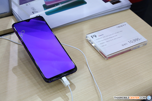 ขยับมาที่รุ่น OPPO F9 สมาร์ทโฟนรุ่นใหม่ล่าสุดในตระกูล F-Series ที่มาพร้อมกับสเปกครบเครื่อง และระบบชาร์จไวแบบ VOOC Flash Charge ในราคา 10,990 บาท โดยโปรโมชันกลางจาก OPPO ผู้ที่ซื้อ OPPO F9 ภายในงาน จะได้รับฟรี Gift Box 2 in 1 และกระเเป๋าเดินทาง Premium Luggage ส่วนโปรโมชันจากผู้ให้บริการเครือข่ายมีรายละเอียดดังนี้