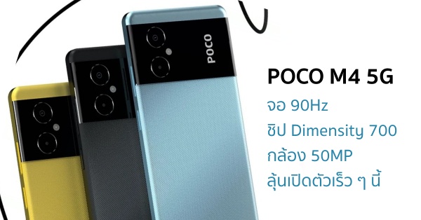 POCO M4 5G เผยภาพพร้อมสเปก มาพร้อมจอ 90Hz, ชิป Dimensity 700, กล้อง 50MP และแบต 5000mAh
