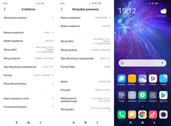 จากภาพบนหน้าจอของสมาร์ทโฟนรุ่นปริศนาเผยให้เห็นการเจาะรูกล้องคู่บนหน้าจอแบบ Dual Punch-Hole Display พร้อมชื่อตัวเครื่องอย่าง POCO X2 บนระบบปฏิบัติการ MIUI 11 เวอร์ชันล่าสุด มีหน่วยความจำภายใน (ROM) ขนาด 256GB และหน่วยความจำแรม (RAM) ขนาด 8GB รวมถึงชิปเซ็ตแบบ Octa-Core Processor ที่มีความเร็ว 2.2 GHz ที่คาดว่าเป็น Qualcomm Snapdragin 730G