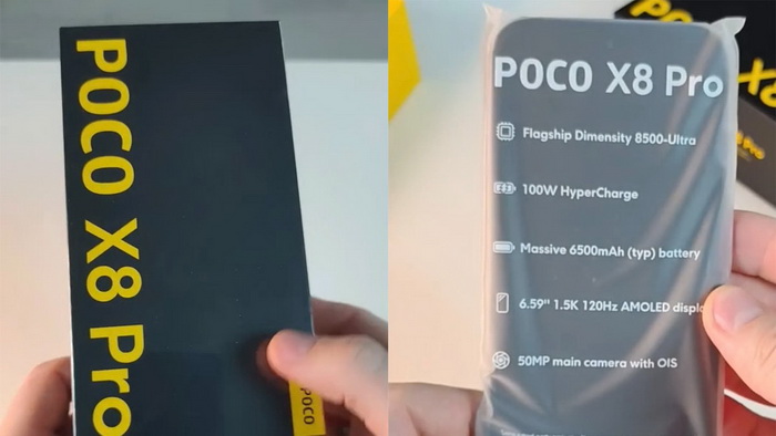 POCO X8 Pro 5G หลุดกล่อง เผยชิป Dimensity 8500-Ultra แบต 6,500mAh ชาร์จไว 100W