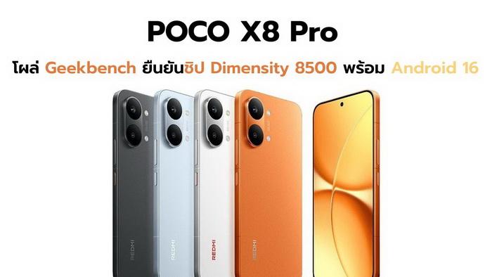 วันนี้ POCO X8 Pro ถูกพบในฐานข้อมูลออนไลน์ของ Geekbench หลังมีเครื่องต้นแบบนำไปรันทดสอบ โดยทำคะแนน single-core ได้ 1,708 และ multi-core ได้ 6,297