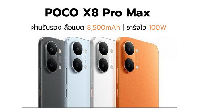 POCO X8 Pro Max ผ่านการรับรองก่อนเปิดตัว จ่อมาพร้อมแบต 8,500mAh และชาร์จไว 100W