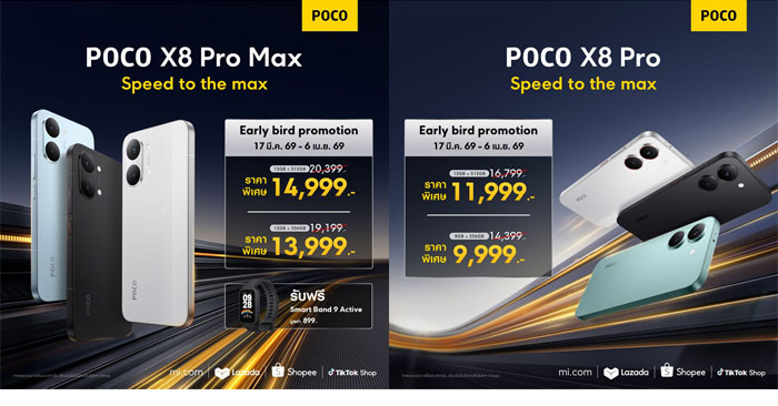 เปิดตัว POCO X8 Pro Max และ POCO X8 Pro สมาร์ตโฟนประสิทธิภาพระดับเรือธง แบตใหญ่ ราคาเริ่มต้น 9,999 บาท