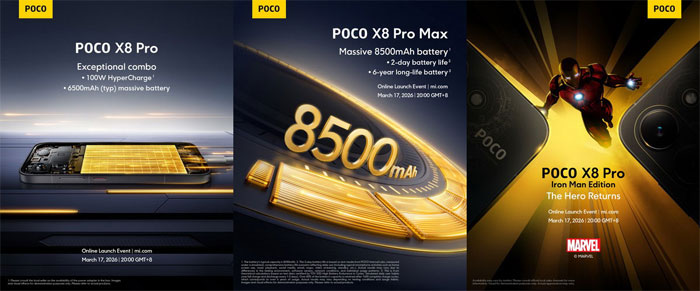 POCO เตรียมเปิดตัว POCO X8 Pro และ POCO X8 Pro Max ในวันที่ 17 มีนาคมนี้ และก่อนหน้านั้นแบรนด์ก็ได้ยืนยันแล้วว่า POCO X8 Pro จะขับเคลื่อนด้วยชิป Dimensity 8500 ส่วน POCO X8 Pro Max จะใช้ชิป Dimensity 9500s
