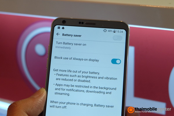 LG G6 มีฟีเจอร์ Always-On Display ให้ใช้งานด้วยเช่นกัน แต่ถ้าหากใครที่คิดว่าการเปิดฟีเจอร์ดังกล่าวจะทำให้เปลืองแบตเตอรี่ก็สามารถปิดฟังก์ชันนี้ได้