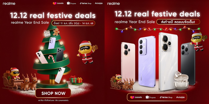 realme จัดเต็มความคุ้มส่งท้ายปีกับ 12.12 REAL FESTIVAL DEALS โปรแรงลดสูงสุด 15% ทุกแพลตฟอร์ม