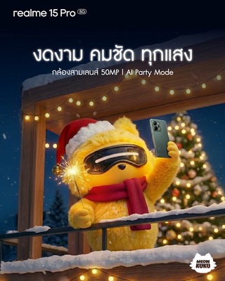 โดยเฉพาะ realme 15 Series 5G ที่ขึ้นแท่นเป็น AI Party Phone เก็บภาพสวยทั้งกลางวันและกลางคืนด้วย AI Party Mode พร้อมกล้องความละเอียด 50MP และถ่ายวิดีโอความละเอียด 4K ได้ทั้งกล้องหน้าและหลัง ช่วยให้ทุกโมเมนต์ของคุณพร้อมแชร์ในคุณภาพระดับโปร