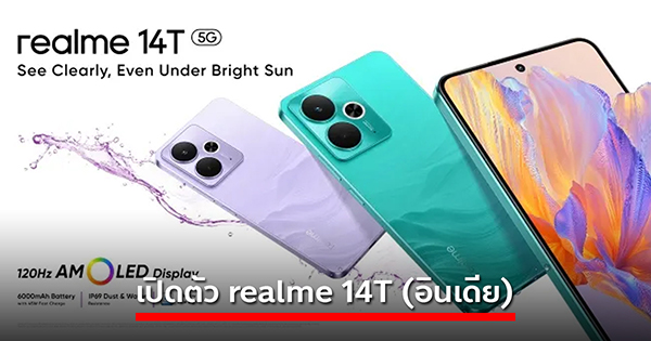 realme เปิดตัวสมาชิกใหม่ในตระกูลตัวเลขอย่าง realme 14T ที่คราวนี้จัดเต็มสเปกน่าสนใจ ทั้งจอ AMOLED, ชิปเซ็ต Dimensity 6300 และแบตเตอรี่ขนาดมหึมา 6,000mAh รองรับชาร์จไว 45W ในราคาเริ่มต้นราว 7,000 บาท