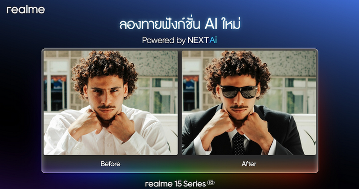 นอกจากนี้ realme 15 Series 5G ยังเปิดตัวฟีเจอร์ “AI Inspiration” ครั้งแรกของวงการ เพียงแตะครั้งเดียวก็สามารถตกแต่งภาพได้อย่างง่ายดาย โดย AI จะรังสรรค์ภาพที่ดีที่สุดให้กับคุณอย่างชาญฉลาด ผ่านการวิเคราะห์ของอัลกอริทึม และมอบการปรับแต่งระดับมืออาชีพอย่างสร้างสรรค์โดยไม่ต้องมีทักษะในการปรับแต่งภาพเลย ฟีเจอร์นี้จะช่วยปรับความสว่าง ลดเกรน ปรับโทนสีผิวให้สวยสมบูรณ์แบบ และขจัดแสงสะท้อนให้แบบอัตโนมัติ ให้ผลงานระดับมืออาชีพ เมื่อทำงานร่วมกับฟีเจอร์อัจฉริยะอื่น ๆ ทั้ง AI MagicGlow 2.0, AI Landscape, AI Glare Remover และ AI Snap Mode ก็มั่นใจได้ว่า realme 15 Series 5G จะมอบภาพถ่ายคุณภาพระดับมืออาชีพที่สดใสได้ในทุกสถานการณ์