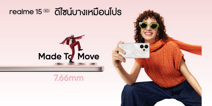 - realme 15 5G เลือกได้ทั้งสี Suit Titanium และ Silk Pink สเปก 12GB/256GB ในราคา 12,999 บาท