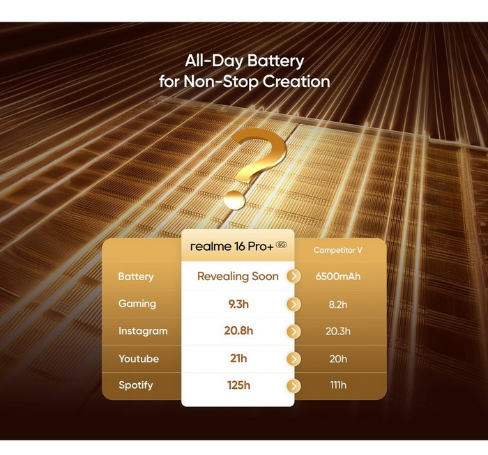 ในส่วนของแบตเตอรี่ ทีเซอร์ระบุเพียงว่ารองรับการใช้งานได้ยาวนาน โดยคาดว่าความจุอาจมากกว่า 6,500mAh แม้รายละเอียดจะยังไม่ชัดเจน แต่จากข้อมูลที่หลุดมาก่อนหน้านี้ระบุว่าอาจใช้แบตเตอรี่ความจุ 7,000mAh