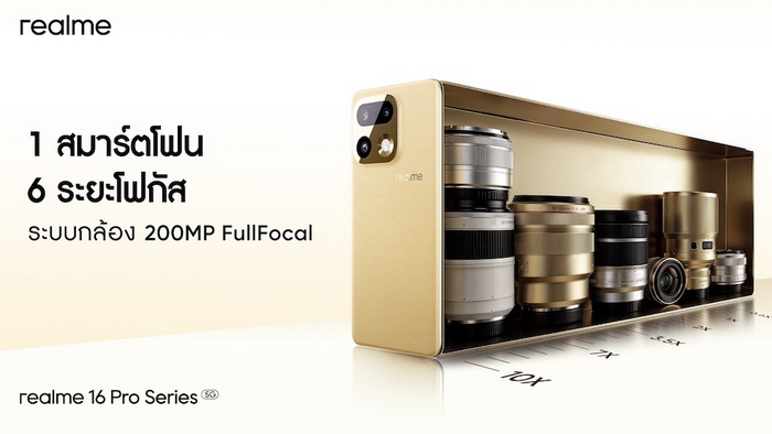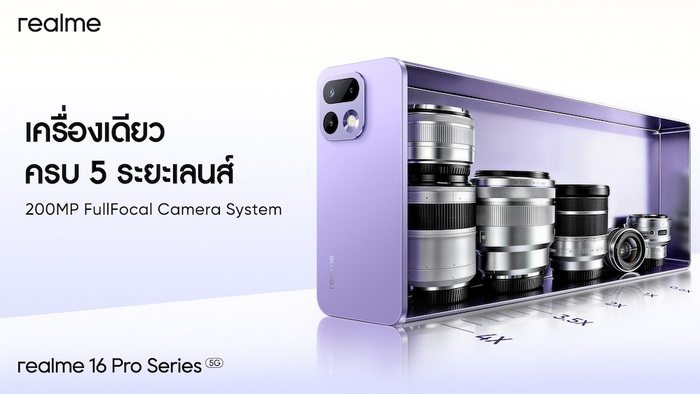 realme 16 Series 5G เปิดตัวในไทย ราคาเริ่ม 11,999 บาทชูกล้อง 200MP LumaColor Portrait Master พร้อม realme Pad 3