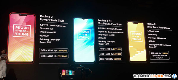 สำหรับ Realme 2, Realme 2 Pro และ Realme C1 มีราคาวางจำหน่ายในประเทศอินโดนีเซียดังนี้