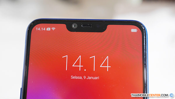 ที่ด้านบนมีรอยบาก (Notch) พื้นที่สำหรับกล้องหน้าความละเอียด 8 ล้านพิกเซล พร้อมลำโพงสำหรับสนทนา และเซ็นเซอร์ต่างๆ