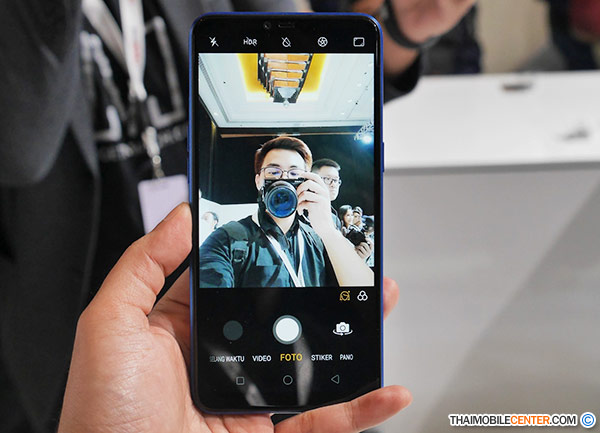 - กล้องดิจิทัลด้านหน้าความละเอียด 5 ล้านพิกเซล พร้อมเทคโนโลยี AI Beautification โดยมีขนาดรูรับแสงกว้างสูงสุดที่ F/2.2