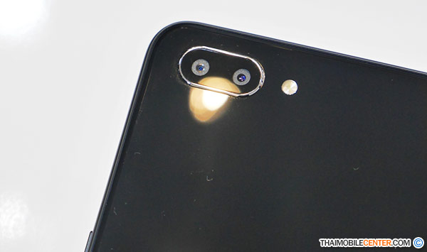 - กล้องดิจิทัลด้านหลังแบบคู่ (Dual Camera) ความละเอียด 13+2 ล้านพิกเซล พร้อมไฟแฟลช LED โดยมีขนาดรูรับแสงกว้างสูงสุดที่ F/2.2, รองรับระบบการโฟกัสภาพแบบ PDAF, โหมดถ่ายภาพหน้าชัดหลังเบลอ (Bokeh), เทคโนโลยี AI Beautification 2.0 และ Live AR Sticker