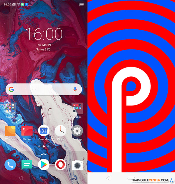 - ระบบปฏิบัติการ Android 9.0 Pie ซึ่งถูกครอบทับด้วย ColorOS 6.0
