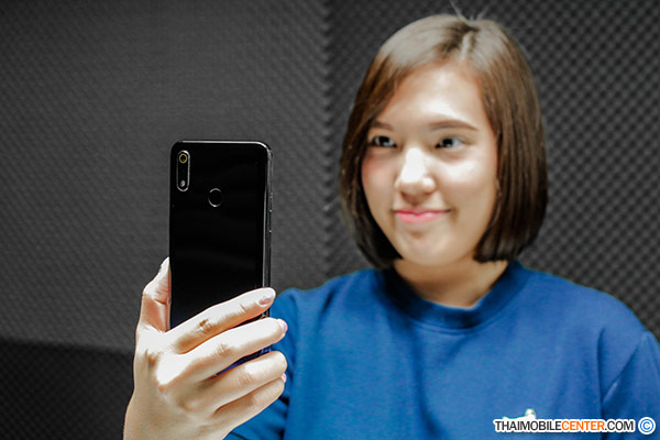การถ่ายภาพด้วยกล้องหลังแบบคู่ (Dual Camera) ความละเอียด 13 + 2 ล้านพิกเซล รองรับโหมด Portrait และเทคโนโลยี AI Beautification สำหรับปรับค่าผิวสวย รวมถึงรองรับฟังก์ชัน AI Scene Recognition ในการตรวจจับซีนต่างๆ