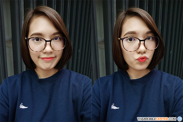 ทางด้านกล้องหน้าความละเอียด 13 ล้านพิกเซล รองรับการถ่ายโหมด Portrait ด้วยเช่นกัน พร้อมกับเทคโนโลยี AI Beautification ที่สามารถปรับโครงสร้างของใบหน้า ไม่ว่าจะเป็น ดวงตา, จมูก, ปาก และอื่นๆ ได้อย่างอิสระ