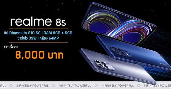 เปิดตัว realme 8s 5G จัดเต็มให้ครบในราคาเริ่ม 8,000 บาท กับจอ 90Hz, ชาร์จไว 33W, ชิป Dimensity 810 5G รุ่นแรกของโลก และ RAM 8GB + 5GB