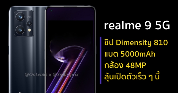 realme 9 5G เผยสเปกแรก มาพร้อมชิป Dimensity 810, กล้อง 3 ตัว 48MP พร้อมแบต 5000mAh จ่อเปิดตัวเร็ว ๆ นี้