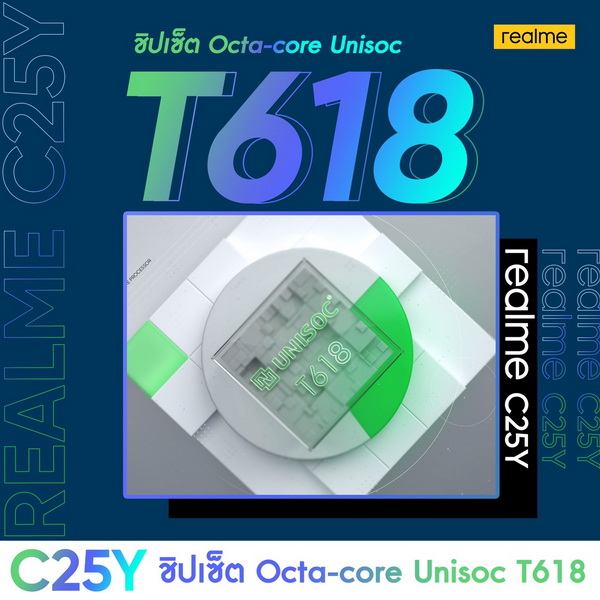 สำหรับชิปเซ็ต Unisoc T618 ในสาย IT รู้จักกันดีว่าซีพียูค่ายนี้ถูกใช้ใน Budget Device มานานแล้ว แล้วยังมีประสิทธิภาพการทำงานที่ลื่นไหลน่าพอใจอีกด้วย จึงเป็นเหตุผลที่ว่าแม้ realme C25Y จะเป็นสมาร์ตโฟนรุ่นเล็ก แต่กลับตอบโจทย์วัยรุ่นสายเกมได้ดีจนน่าแปลกใจ ซึ่งถ้าเล่นเกมได้ลื่นไหล การใช้งานแอปอื่น ๆ ก็หายห่วงไปได้เลย แถมมาพร้อมสเปกหน่วยความจำ Ram 4GB / Rom 128 GB ที่เพียงพอต่อการใช้งานทั่วไปอย่างสบาย ๆ