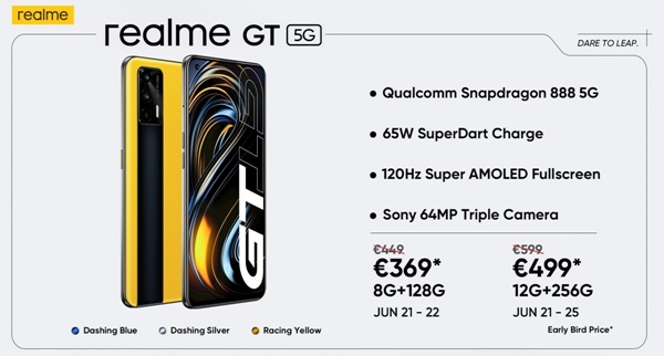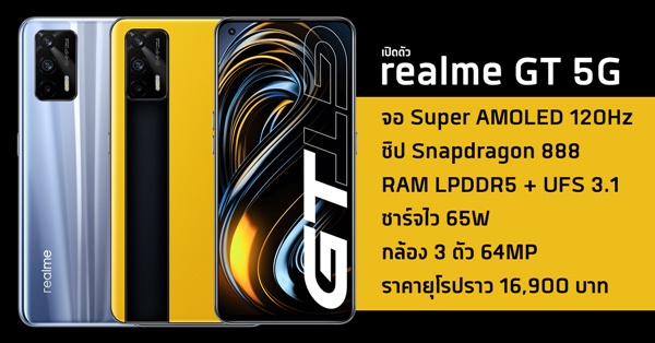 เปิดตัว realme GT 5G เวอร์ชัน Global แรงด้วยชิป Snapdragon 888, จอ Super AMOLED 120Hz, ชาร์จไว 65W ในราคาเริ่มราว 16,900 บาท เตรียมเข้าไทยเร็ว ๆ นี้