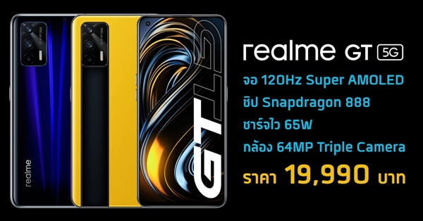 realme GT 5G เปิดราคาไทย 19,990 บาท จัดเต็มจอ 120Hz Super AMOLED, ชิป Snapdragon 888, ชาร์จไว 65W และกล้อง 64MP