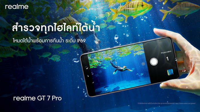 ผู้ใช้จะสัมผัสได้ว่าภาพถ่ายของ realme GT 7 Pro มีความสวยงามอย่างน่าประทับใจ ด้วยประสิทธิภาพการซูมเทเลโฟโต้แบบออพติคัล 3X ด้วยเลนส์เพอริสโคป Sony IMX882 ซึ่งยกระดับศักยภาพการเทเลโฟโต้เพื่อให้ได้ภาพที่คมชัดและเก็บรายละเอียดได้มากกว่าเมื่อถ่ายจากระยะไกล และในฐานะเรือธงตัวแรกในอุตสาหกรรมมือถือที่รองรับการถ่ายภาพใต้น้ำ ทำให้ realme GT 7 Pro สลับใช้โหมดถ่ายภาพใต้น้ำได้แบบอัตโนมัติ ทำให้ผู้ใช้สามารถปลดล็อกโทรศัพท์และถ่ายภาพความละเอียดสูงได้แม้อยู่ใต้น้ำ ส่วนโหมด AI Snap ซึ่งขับเคลื่อนด้วย AI Demotion Engine แบบใหม่ ก็ช่วยให้มั่นใจได้ว่าคุณจะสามารถถ่ายภาพวัตถุที่เคลื่อนที่ด้วยความเร็วสูงได้อย่างชัดเจนแบบที่ไม่มีมือถือรุ่นใดทำได้ คุณจึงบันทึกช่วงเวลาสำคัญที่เกิดขึ้นแบบฉับพลันได้แบบไม่มีพลาด นอกจากนี้ ยังรองรับ Live Photo เพื่อการบันทึกช่วงเวลาสุดประทับใจได้อย่างสดใสมีชีวิตชีวาเอาไว้ในอัลบั้มหรือแชร์ผ่าน Instagram ได้อย่างรวดเร็ว ให้คุณได้หวนนึกถึงวินาทีอันมีค่าได้อย่างเต็มเปี่ยมทุกอารมณ์