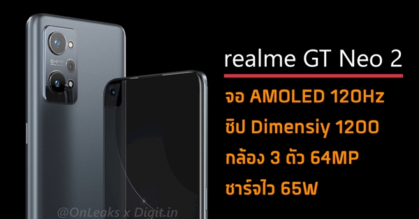 realme GT Neo 2 ว่าที่มือถือสเปกแรงรุ่นใหม่ มาพร้อมจอ 120Hz, ชิป Dimensity 1200, ชาร์จไว 65W และกล้อง 64MP เตรียมเปิดตัวเร็ว ๆ นี้