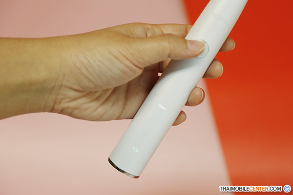 สำหรับปุ่มเปิด-ปิด การทำงานจะมีลูกเล่นที่น่าสนใจเล็กน้อย โดยเมื่อเราเปิดใช้งานแปรงสีฟัน และอยู่ในโหมดที่เลือกไว้เป็นเวลานานเกินกว่า 8 วินาที หากเรากดปุ่มเปิด-ปิด เป็นช่วงสั้นๆ และเปิดใช้งานใหม่อีกครั้ง ระบบก็จะทำการเข้าสู่โหมดทำความสะอาดที่เราเลือกใช้ล่าสุด ไม่จำเป็นต้องเลือกใหม่ทุกรอบ