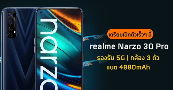 realme Narzo 30 Pro ว่าที่มือถือ 5G รุ่นใหม่ มาพร้อมกล้อง 3 ตัวแบตจุ 4,880mAh และหน้าจอ 6.5 นิ้ว ลุ้นเปิดตัวเร็วๆ นี้