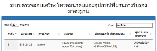 realme narzo 50A Prime ได้ผ่านการรับรองจากทาง กสทช. เป็นที่เรียบร้อยแล้ว ซึ่งก็ต้องมาติดตามกันต่อไปว่าจะเปิดตัวทางการในบ้านเราช่วงใด