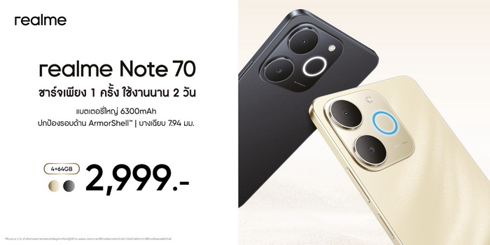 - realme Note 70 รุ่นความจุ 4/64 GB ราคา 2,999 บาท