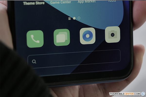 ที่ด้านล่างของหน้าจอแบบ Default จะไม่มีปุ่มกดแบบสัมผัสเหมือนกับ realme รุ่นก่อนๆ แล้ว อันเนื่องมาจากสมาร์ทโฟนรุ่นนี้ได้เปลี่ยนไปใช้ Custom UI ที่ realme พัฒนาขึ้นมาเองภายใต้ชื่อ realme UI เป็นครั้งแรก