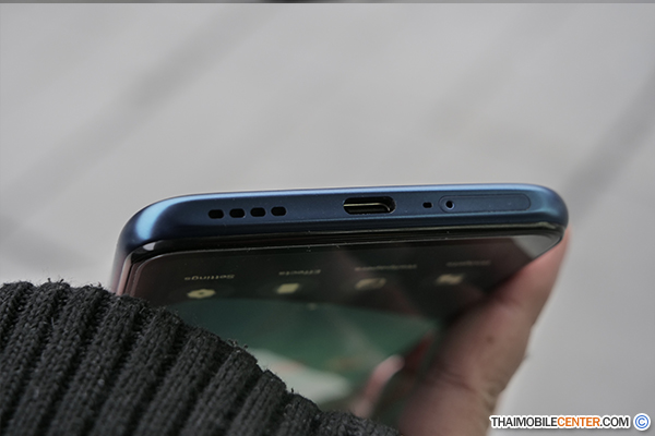 ที่ด้านล่างของตัวเครื่องประกอบไปด้วย ถาดใส่ซิมการ์ด, พอร์ตเชื่อมต่อแบบ USB Type-C, ไมโครโฟนสำหรับสนทนา และลำโพงเสียงตัวหลัก