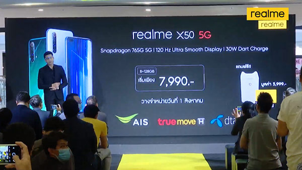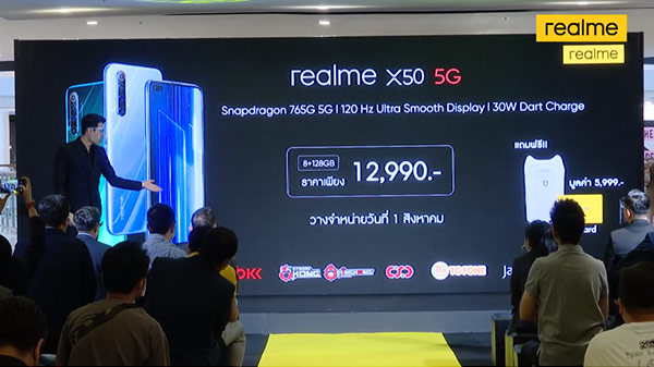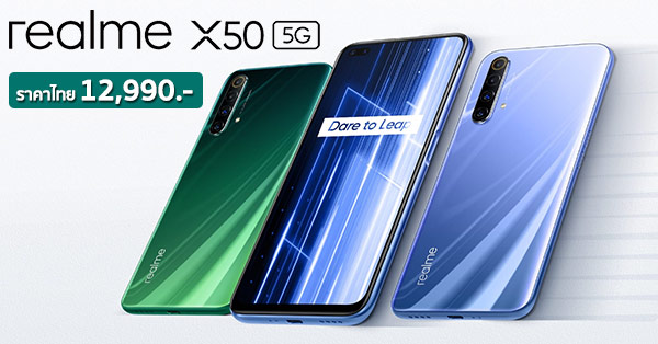 realme X50 5G เปิดราคาไทย 12,990 บาท มือถือ 5G น้องใหม่ จัดเต็มกับชิป Snapdragon 765G จอลื่น 120Hz แบต 4200 mAh + ชาร์จไว 30W และกล้อง 6 ตัวในเครื่องเดียว