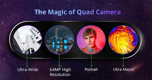 - กล้องหลัง 4 ตัว (Quad Camera) ความละเอียด 64 ล้านพิกเซล