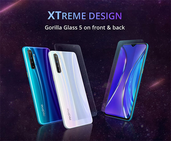 realme XT ใช้งานหน้าจอ Super AMOLED แบบไร้ขอบทรงหยดน้ำ ที่มีการฝังเซ็นเซอร์สแกนลายนิ้วมือไว้ใต้หน้าจอ (In-Display Fingerprint) พร้อมตัวเครื่องครอบทับด้วยกระจก Gorilla Glass 5 ทั้งด้านหน้า และหลังที่มีความเงางาม ไล่เฉดเล่นกับแสงในมุมตกกระทบต่างๆ และมีลวดลายสวยสะดุดตา กับตัวเลือกใหม่ 2 สี รวมถึงกล้องหลังทั้งหมด 4 ตัว (AI Quad Camera) ที่มีการระบุคำว่า 64MP ไว้อย่างชัดเจน ซึ่งประกอบด้วย กล้องตัวหลัก 64 ล้านพิกเซลแบบ High Resolution, กล้องตัวที่สองเลนส์มุมกว้าง Ultra-Wide, กล้องตัวที่สามเลนส์ Portrait และกล้องตัวที่สี่เลนส์ Ultra-Macro