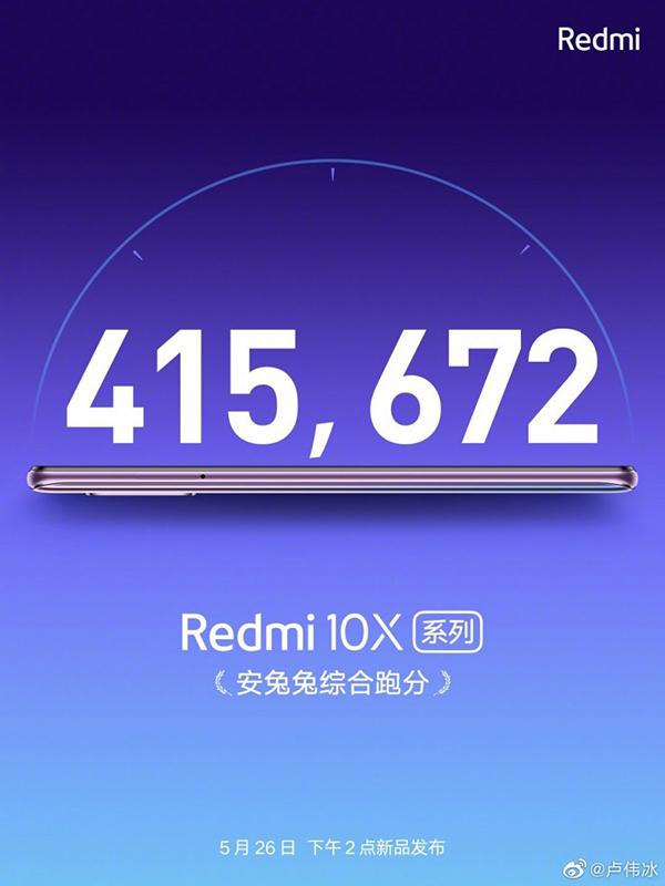 นอกจากนี้ Redmi ยังได้อวดผล benchmark บน AnTuTu ของ Redmi 10X ด้วย โดยทำได้มากกว่า 400,000 คะแนน อยู่ในระดับที่ใกล้เคียงกับชิป Kirin 985 ของ Huawei และ Snapdragon 845 ของ Qualcomm