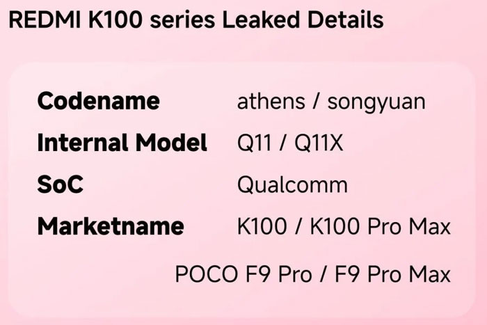 Redmi K100 ถูกระบุว่าใช้โค้ดเนม “athens” พร้อมรหัสภายใน Q11