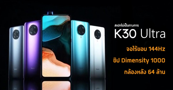 Redmi K30 Ultra เผยสเปกแรก ชูจุดเด่นชิป MediaTek Dimensity 1000, จอไร้รอยบาก 144Hz และกล้องหลัง 4 ตัว 64MP จ่อเปิดตัวเร็วๆ นี้