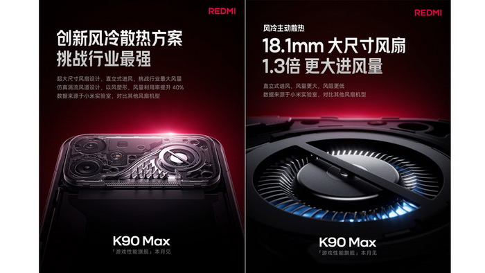 พัดลมดังกล่าวสามารถลดอุณหภูมิลงได้ 10 องศาภายในเวลา 100 วินาที เมื่อทำงานในระดับสูงสุด และแม้ว่า Redmi K90 Max จะมาพร้อมพัดลมระบายความร้อน แต่ตัวเครื่องก็ยังรองรับมาตรฐานกันฝุ่นและกันน้ำระดับ IP66, IP68 และ IP69 นอกจากนี้ ผู้ใช้งานในจีนยังสามารถจอง K90 Max ล่วงหน้าได้แล้วในราคาเพียง 9.9 หยวน (ประมาณ 1.44 ดอลลาร์สหรัฐ) เพื่อรับแพ็กของขวัญปริศนามูลค่า 3,600 หยวน (ประมาณ 523 ดอลลาร์สหรัฐ) เมื่อสมาร์ตโฟนเปิดตัวอย่างเป็นทางการ
