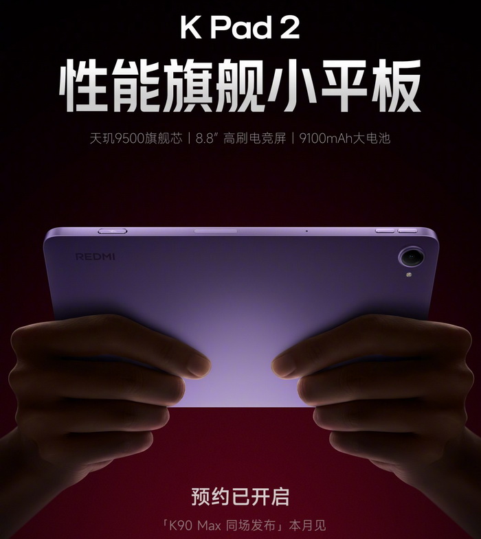 บริษัทยังยืนยันด้วยว่าจะเปิดตัว Redmi K Pad 2 พร้อมกับ Redmi K90 Max ภายในเดือนนี้ และได้เผยภาพแรกพร้อมสเปกสำคัญบางส่วนของแท็บเล็ตรุ่นดังกล่าวออกมาแล้ว