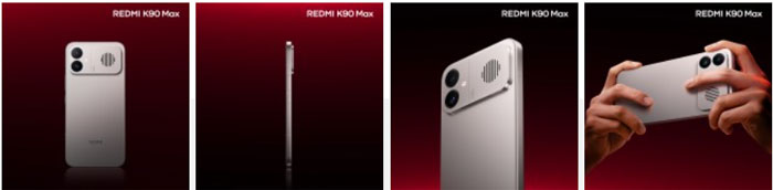 อย่างไรก็ตาม แทนที่จะเป็นช่องลำโพงแบบที่เห็นใน Redmi K90 Pro Max สมาร์ตโฟนรุ่นใหม่นี้จะมาพร้อมช่องตะแกรงขนาดใหญ่กว่าสำหรับพัดลมระบายความร้อนในตัว พร้อมช่องระบายอากาศเพิ่มเติมที่อยู่ใต้โมดูลกล้อง อีกทั้ง Redmi K90 Max ยังมาพร้อมกล้องหลังคู่